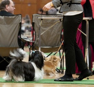 Daisy på udstilling – bemærk hvor hun logrer.